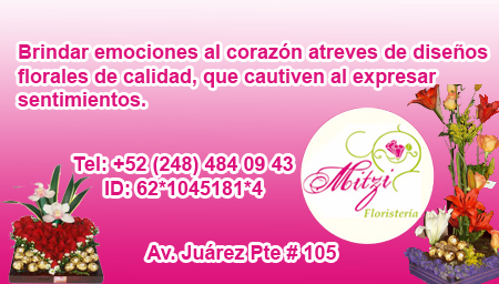 Av. Juárez Pte # 105, Col. Centro C.P. 74000, San Martín Texmelucan, Puebla. Tel: +52 (248) 484 09 43. ID: 62*1045181*4 www.mitzifloristeria.com Ubicación
