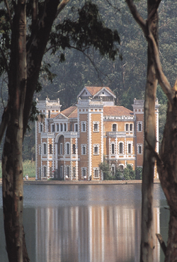 presa para formar un lago artificial, en medio del cual se levanta un